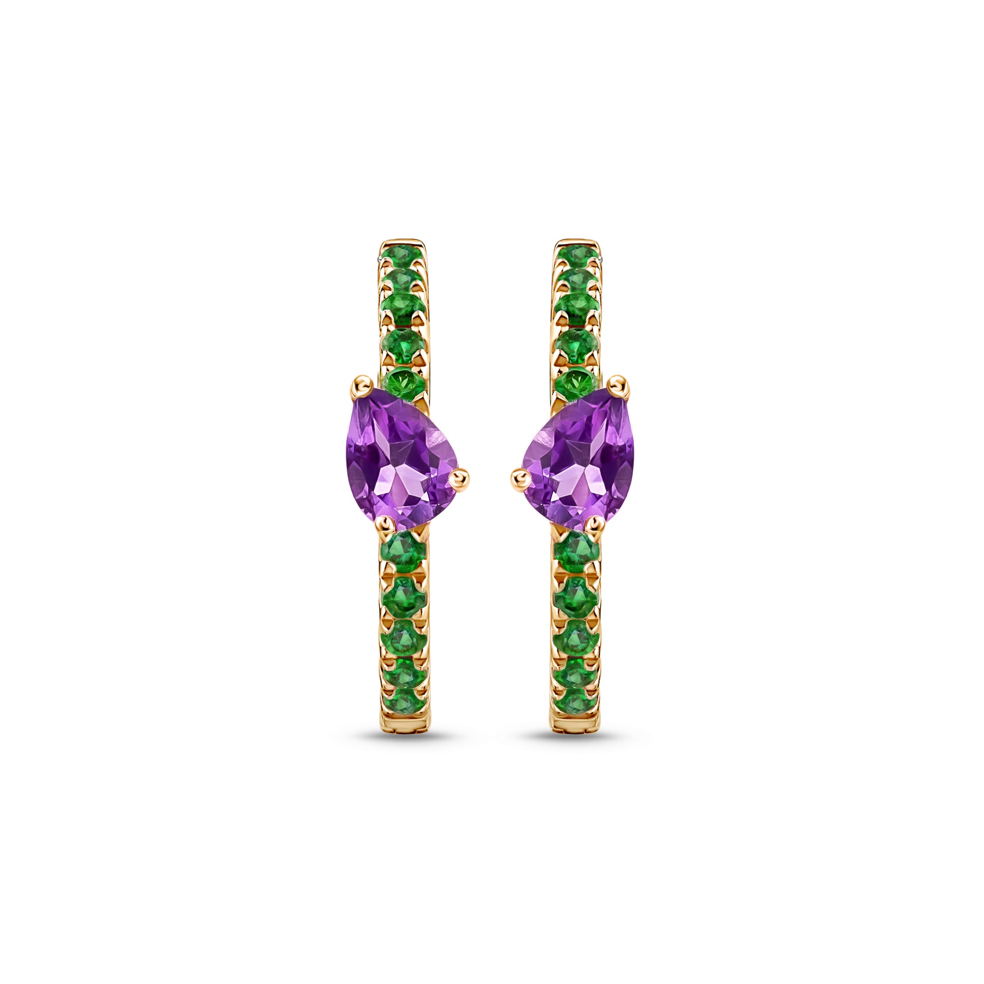 Antsy Huggies: tsavorite and amethyst set in 18k rose gold.