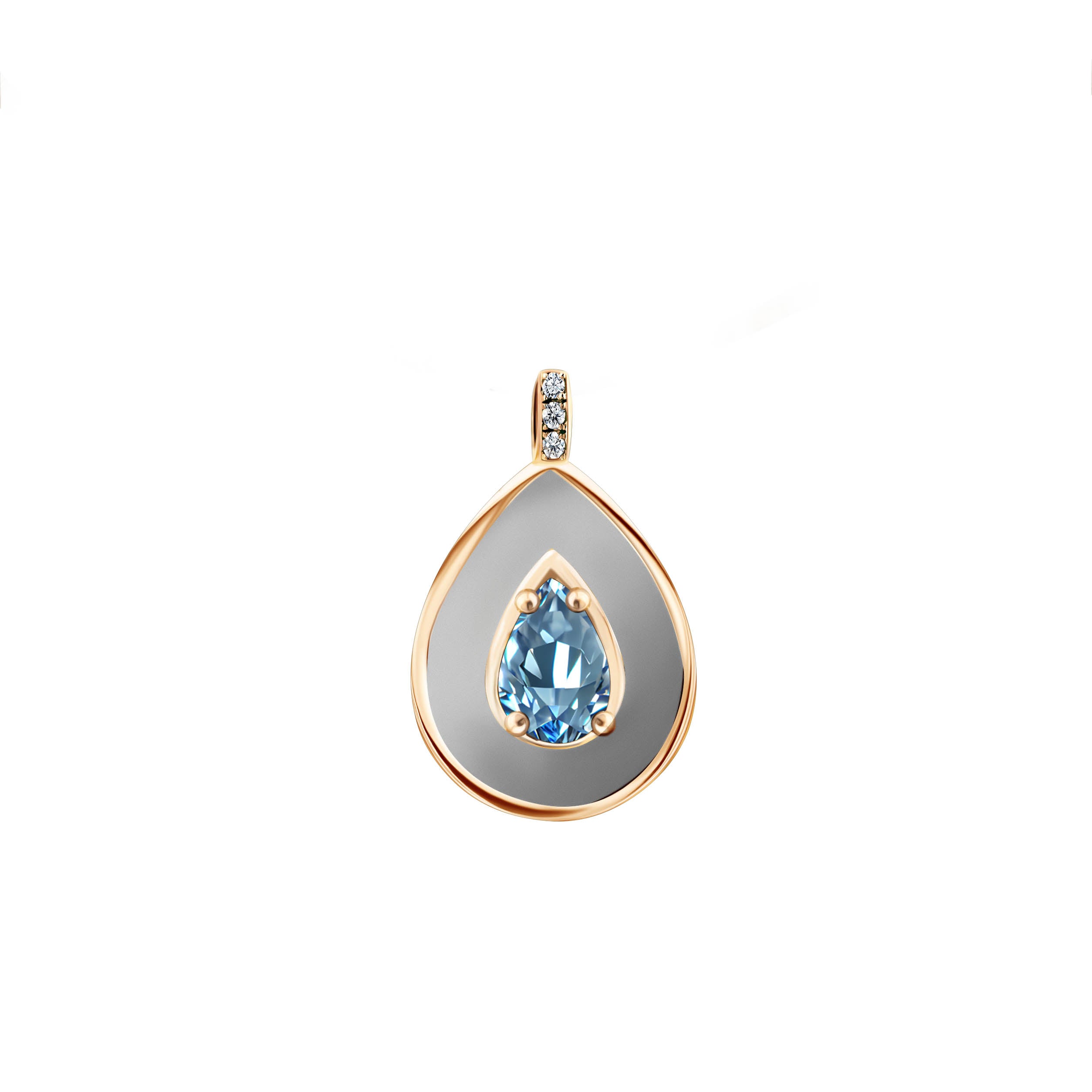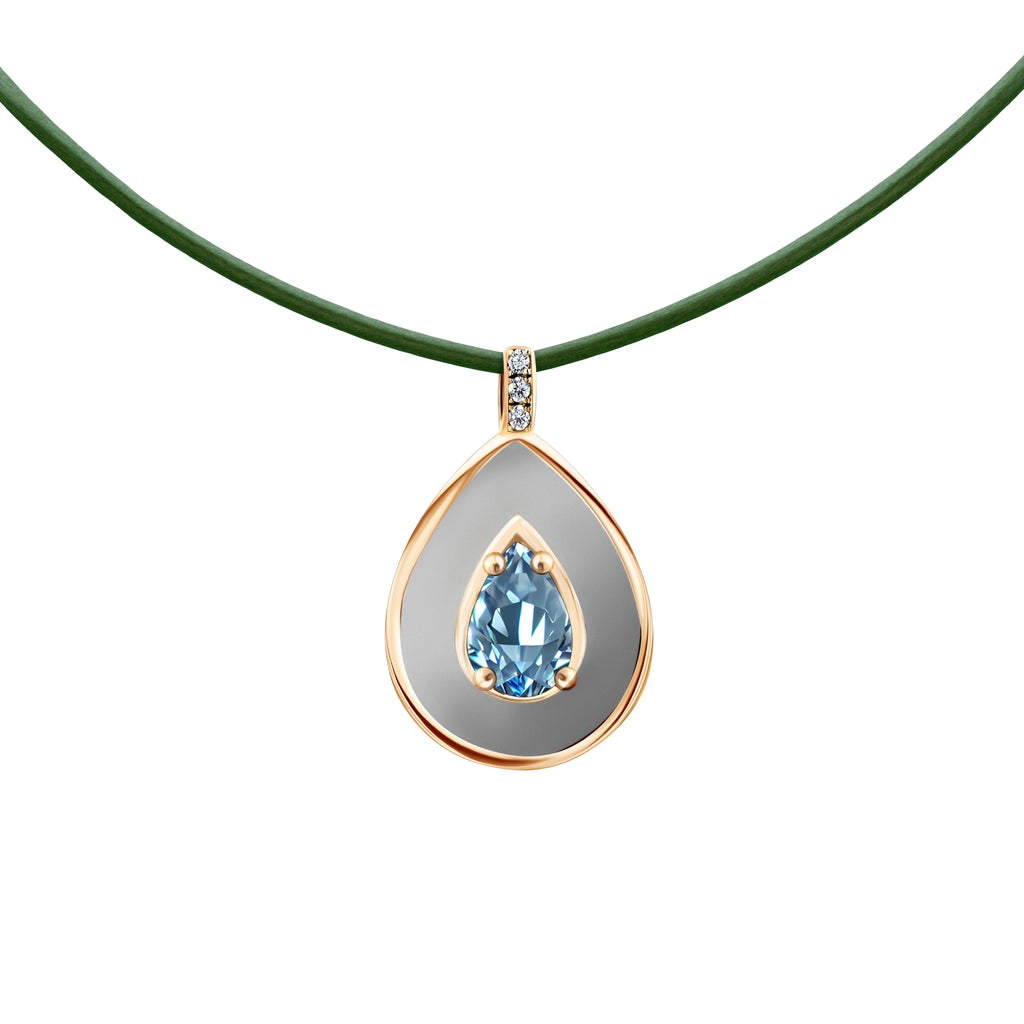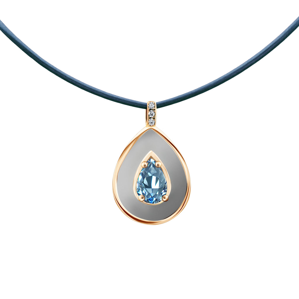 The Soprano pendant in grey enamel features a pear-shaped topaz, set in 18k rose gold.
