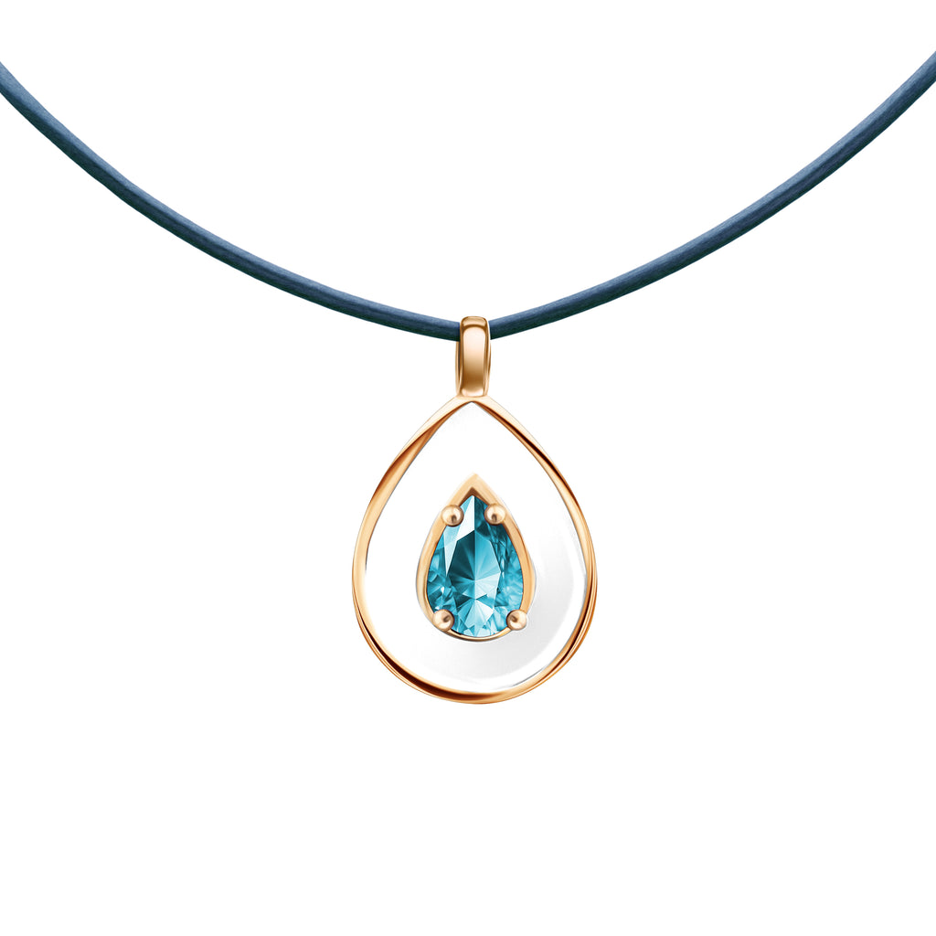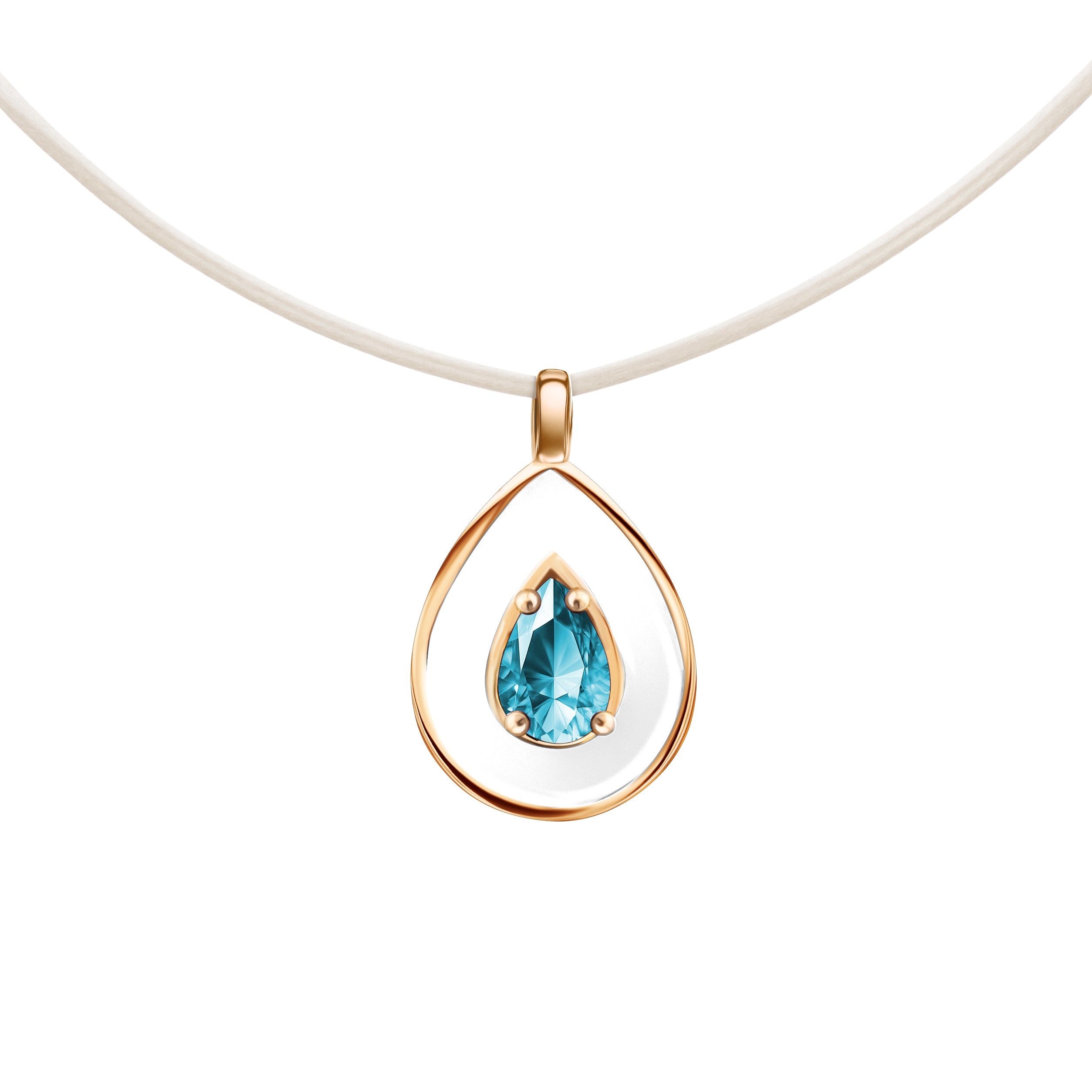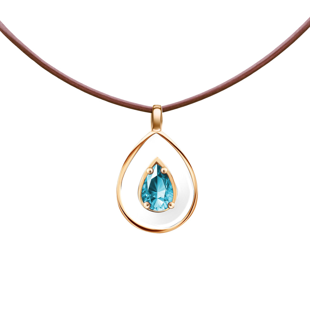 The Soprano pendant in white enamel features a pear-shaped topaz, set in 18k rose gold.