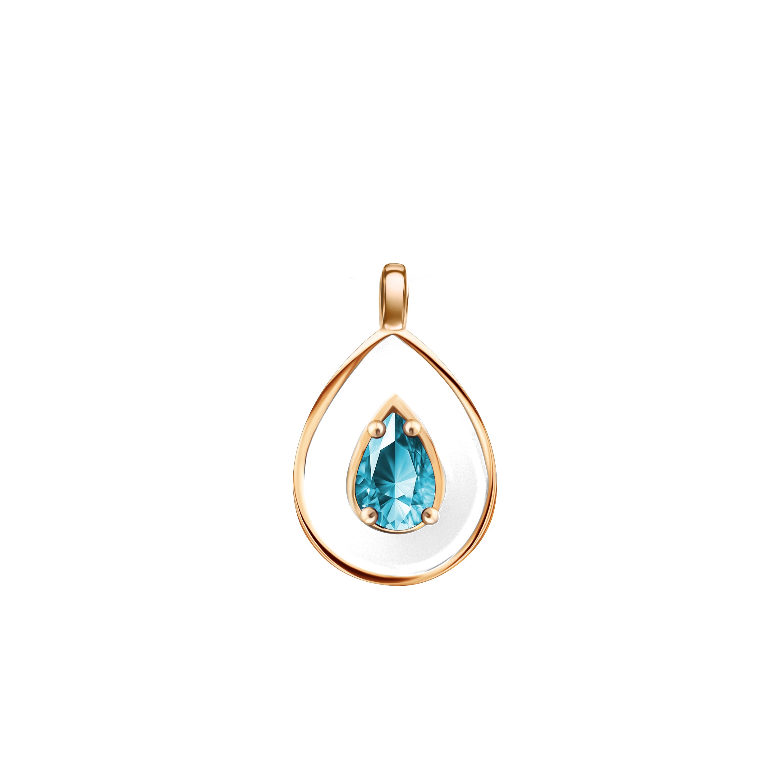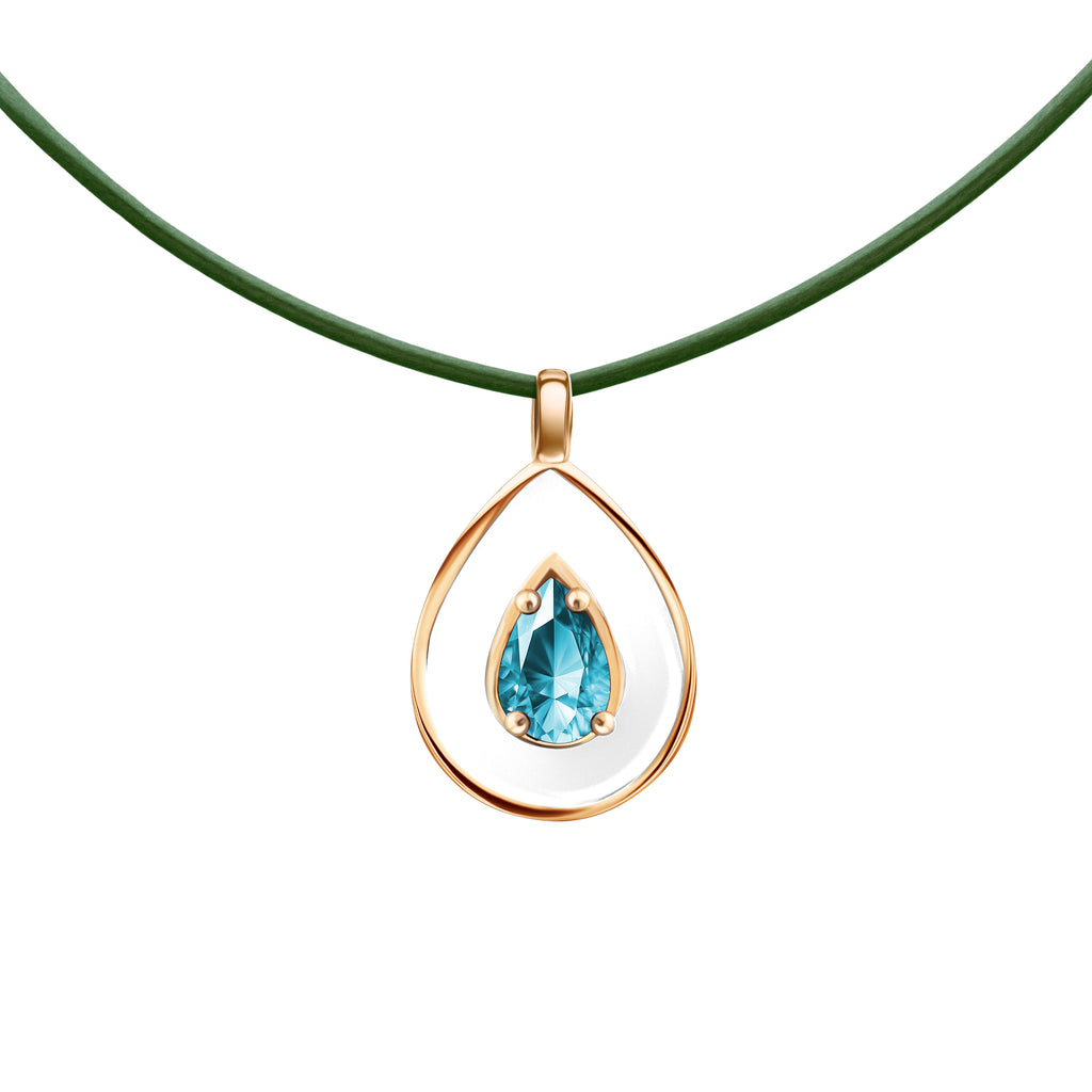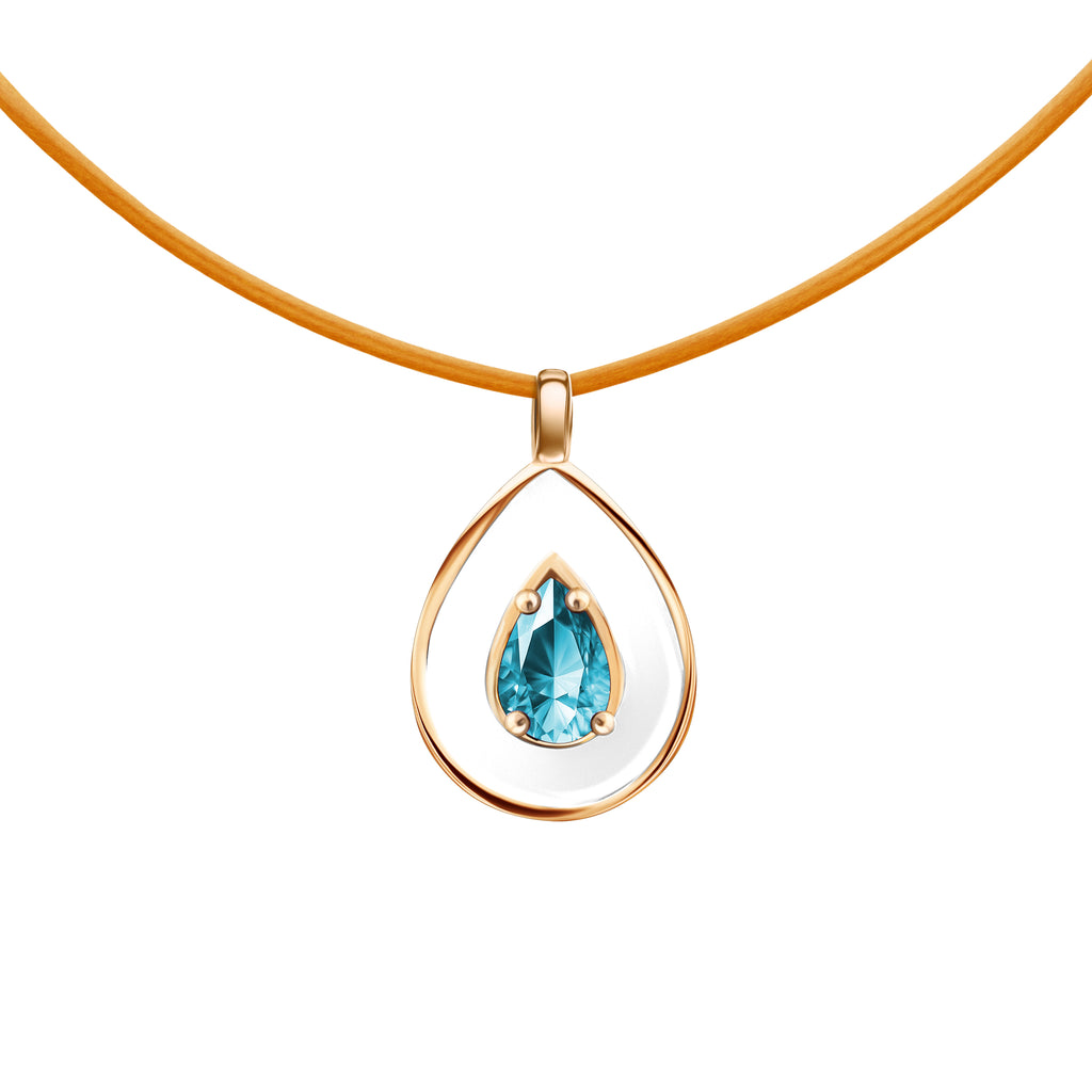 The Soprano pendant in white enamel features a pear-shaped topaz, set in 18k rose gold.