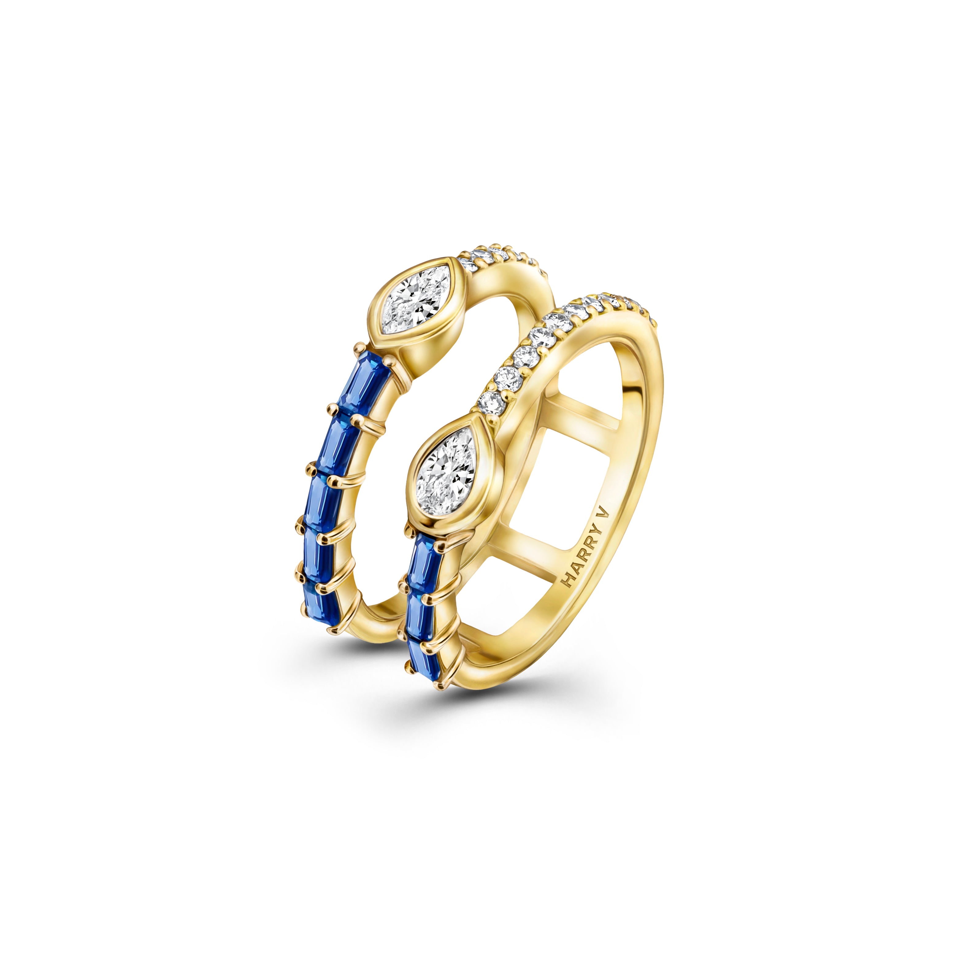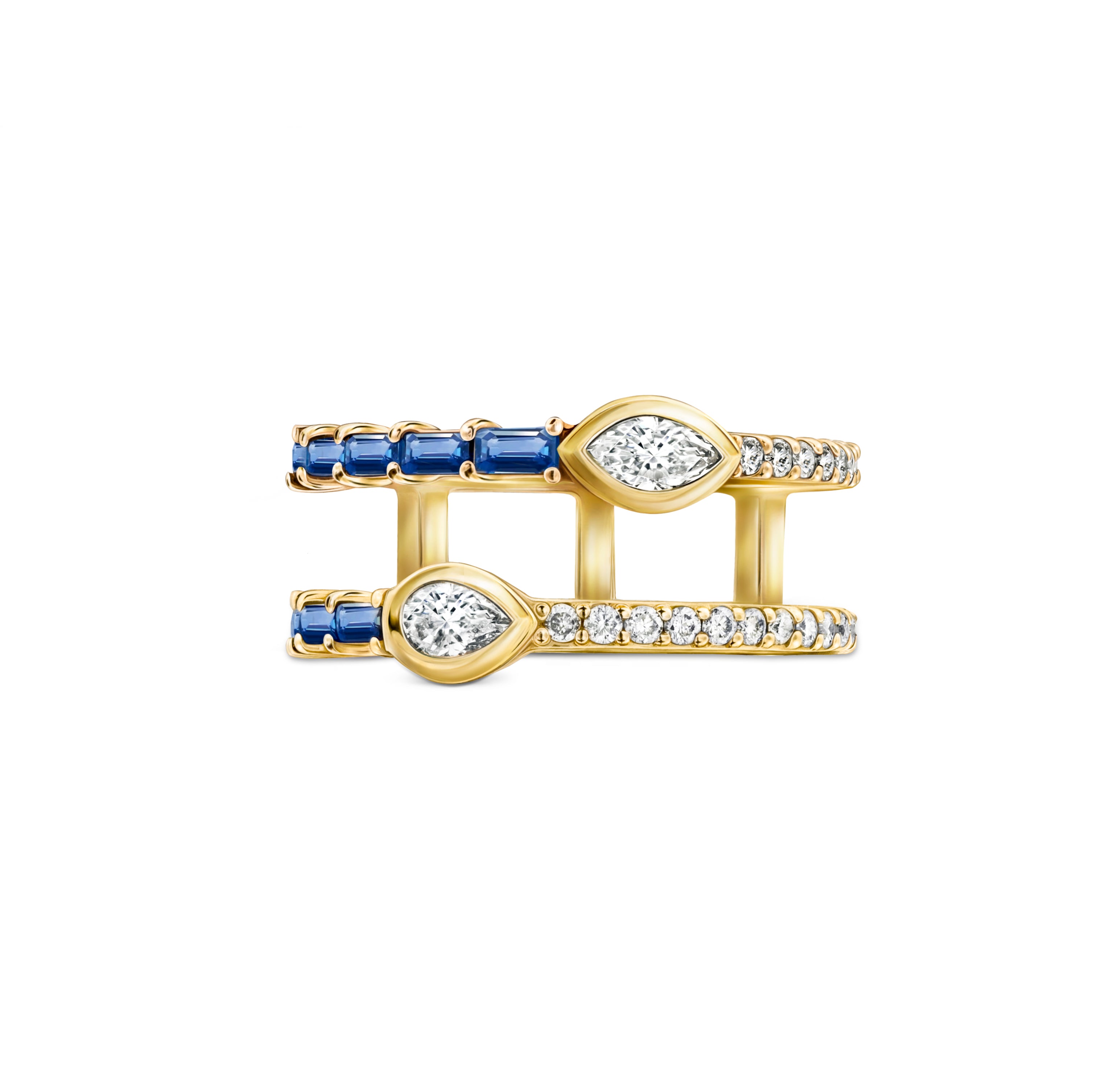 su-Mo sapphire and diamond ring set in 18k yellow gold.