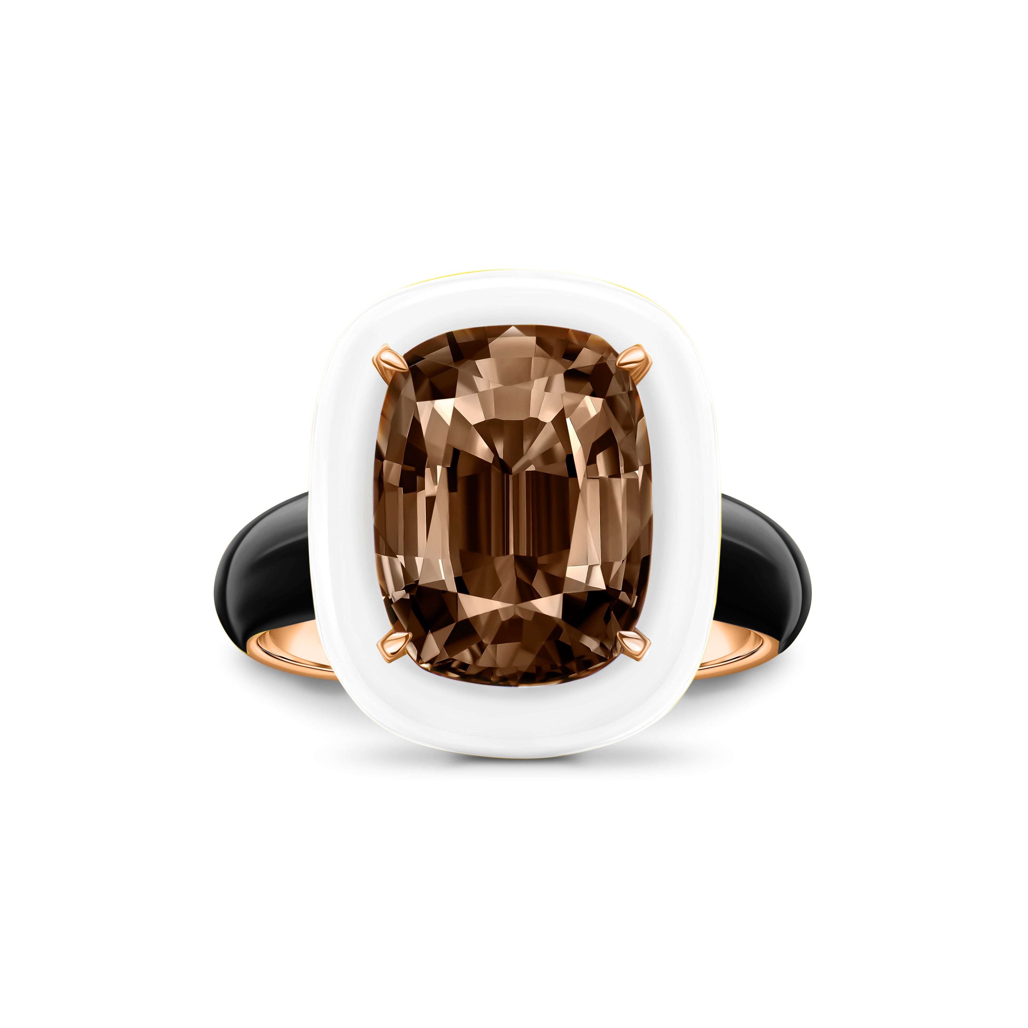 Mono Mix ring in black and white ceramic features a quartz set in 18k rose gold.