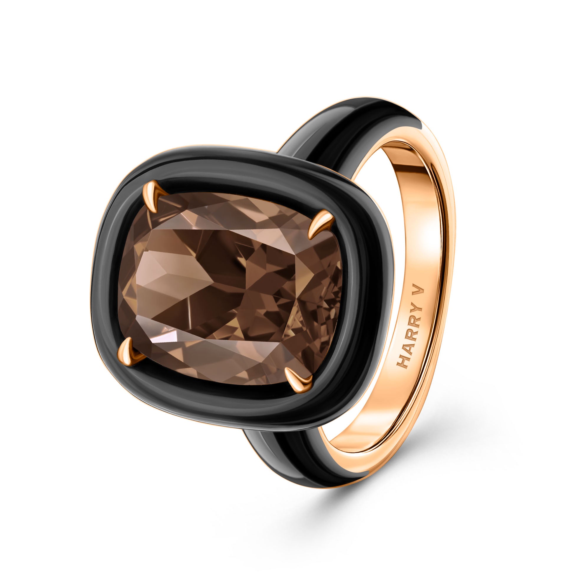 The Mono ring in black ceramic features a quartz set in 18k rose gold.
